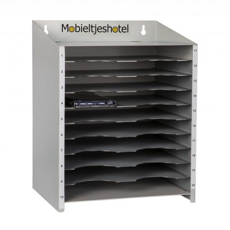 Mobieltjeshotel voor 20 mobieltjes van staal met nummers